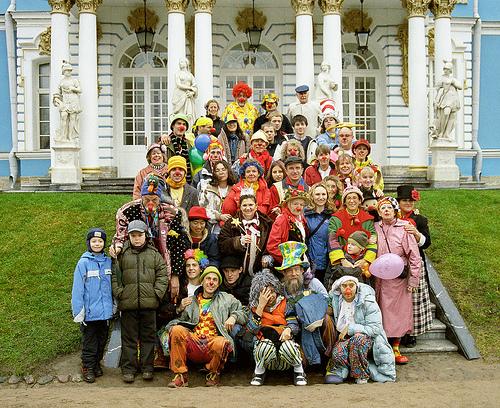 dozen clowns from all over the world to Russia on a goodwill, peace keeping